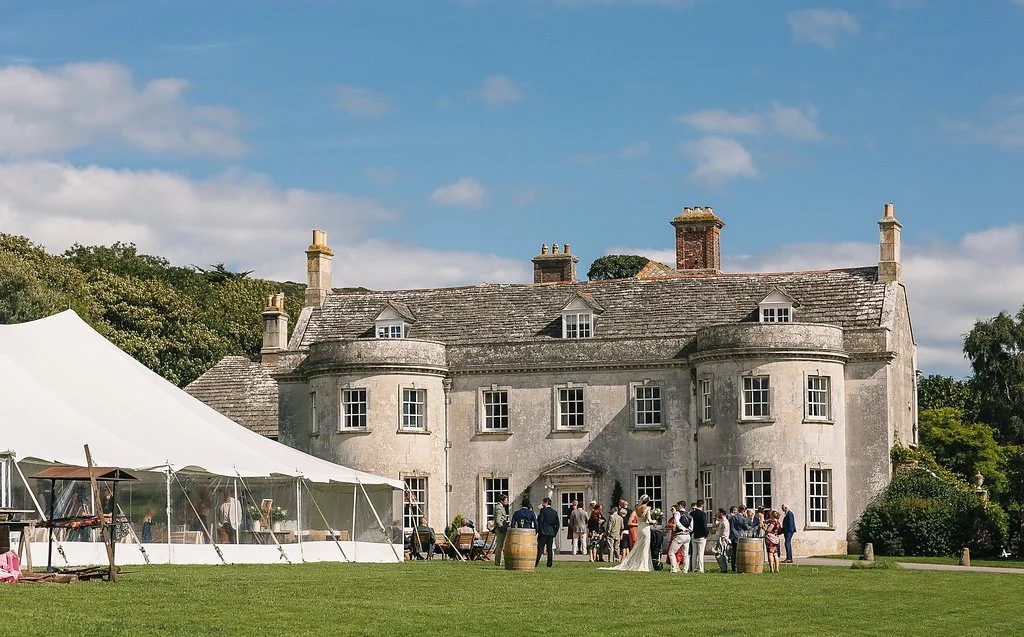 A beautifully preserved Georgian manor house on the Isle of Purbeck, with views across Kimmeridge Bay and the Jurassic Coast. Smedmore has an intimacy and warmth that belies its grandeur — it feels like a home, because it is one. Weddings here have a very particular quality of light and atmosphere that we find endlessly inspiring.